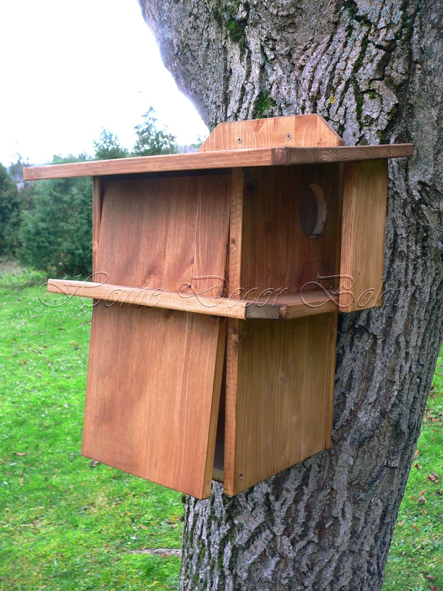Robustní budka s ochozem pro veverky vyrobena ze smrkového masivu. Vstupní otvor je opatřen krytem proti predátorům. Přední strana je výklopná co umožňuje snadně čištění.