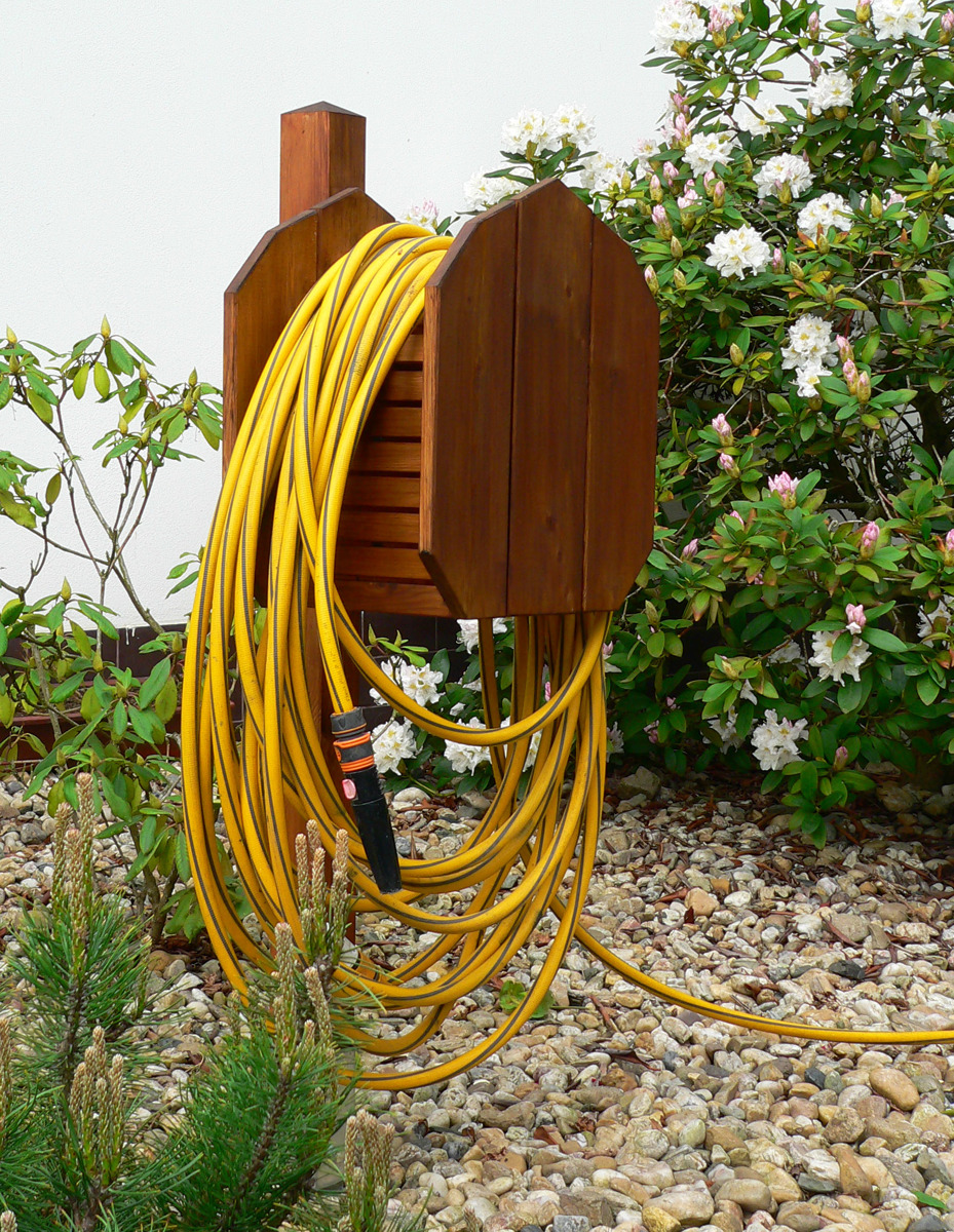 Praktický dřevěný držák na hadice je vyrobený z masivu sibiřského modřínu a smrku(noha). Sibiřský modřín nelze srovnávat s modřínem evropským. Název je stejný ale vlastnost se liší. Kvalita sibiřského modřínu převyšuje téměř ve vśech ohledech kvalitu dubu(mrazuvzdornost, odolnost vůči vodě, biologickou odolnost, životnost). Sibiřský modřín je tvrdé, poměrně pružné a velmi trvanlivé dřevo. Díky vysoké hustotě, velkému obsahu pryskyřice a specifickému složení dehtů se sibiřský modřín nachází nejenom na prvním místě v odolnosti vůči zahnívání. V porovnání s dubem, jasanem nebo borovicí je dvojnásobně rezistentní.