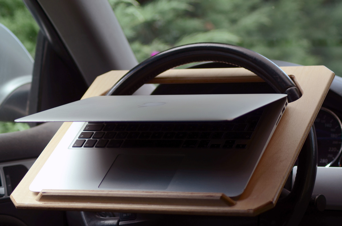 Praktický držák notebooku anebo tabletu do auta umožňuje pohodlnou práci s laptopem i na cestách. Držák se jednoduše nasadí na volant, ideální polohu lze ještě dostavit výškovým nastavením volantu. Vhodné pro notebooky až do velikosti 15".