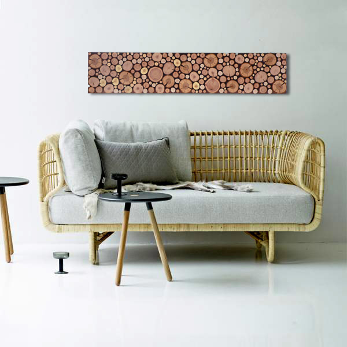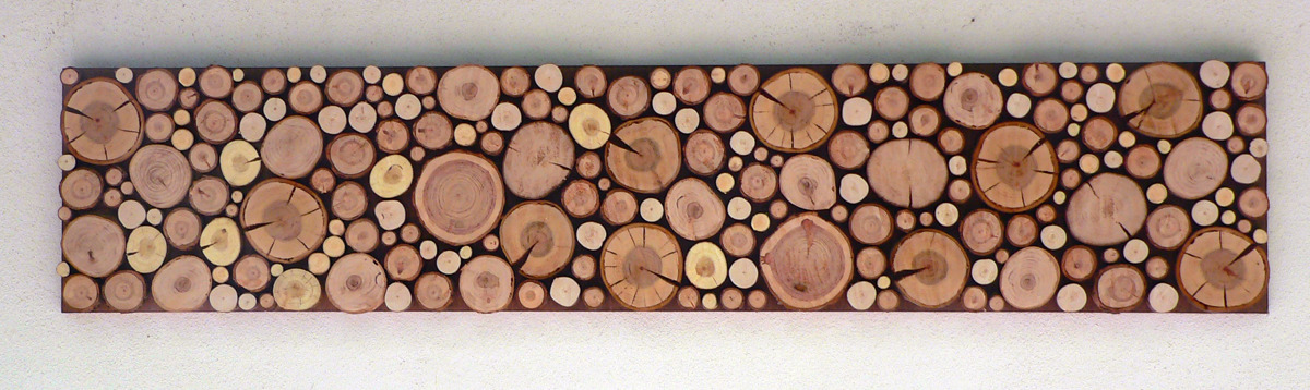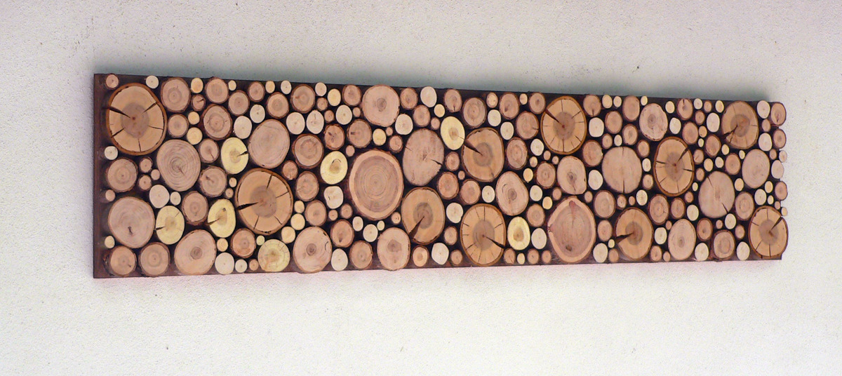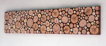 Nástěnná 3D dekorace vyrobena z plátků větví ( stejné tloušťky) ovocných dřevin a bukové překližky. Ošetřeno nezávadným bezbarvým akrylovým lakem. Unikátní design, každý kus je nezaměnitelný originál. Závěsný systém v ceně. Vhodná do kancelářkých prostor, obyvacích prostor a pod. Možnost horizontálního i vertikálního pověšení.