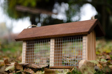 Poctivé krmítko z poctivého dřeva. Vyrobeno z masivu sibiřského modřínu a ošetřeno lazurou Remmers. Toto krmítko se Vám určitě po pár letech nerozpadne nebo neshnije. Stříška krmítka se dá snadno nadzvednout  a krmítko naplnít krmivem(lůj, špek, jablka, atd.)