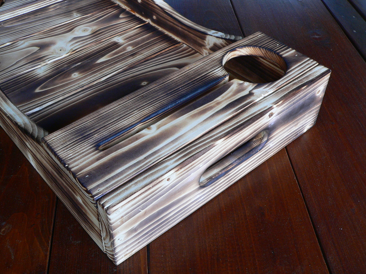 Dřevěný, ručně vyráběný podnos Drink pro servírování vína a pohoštění. Určený pro standartní sklenice na víno a láhve 0,7l. Umožňuje bezpečné přenášení až 2 lahví vína a 4 sklenic na víno bez hrozby převrhnutí.