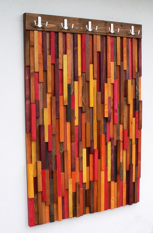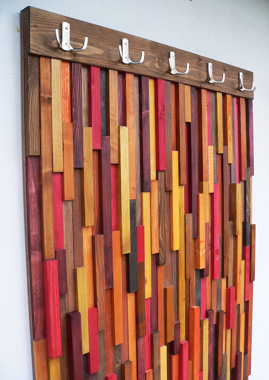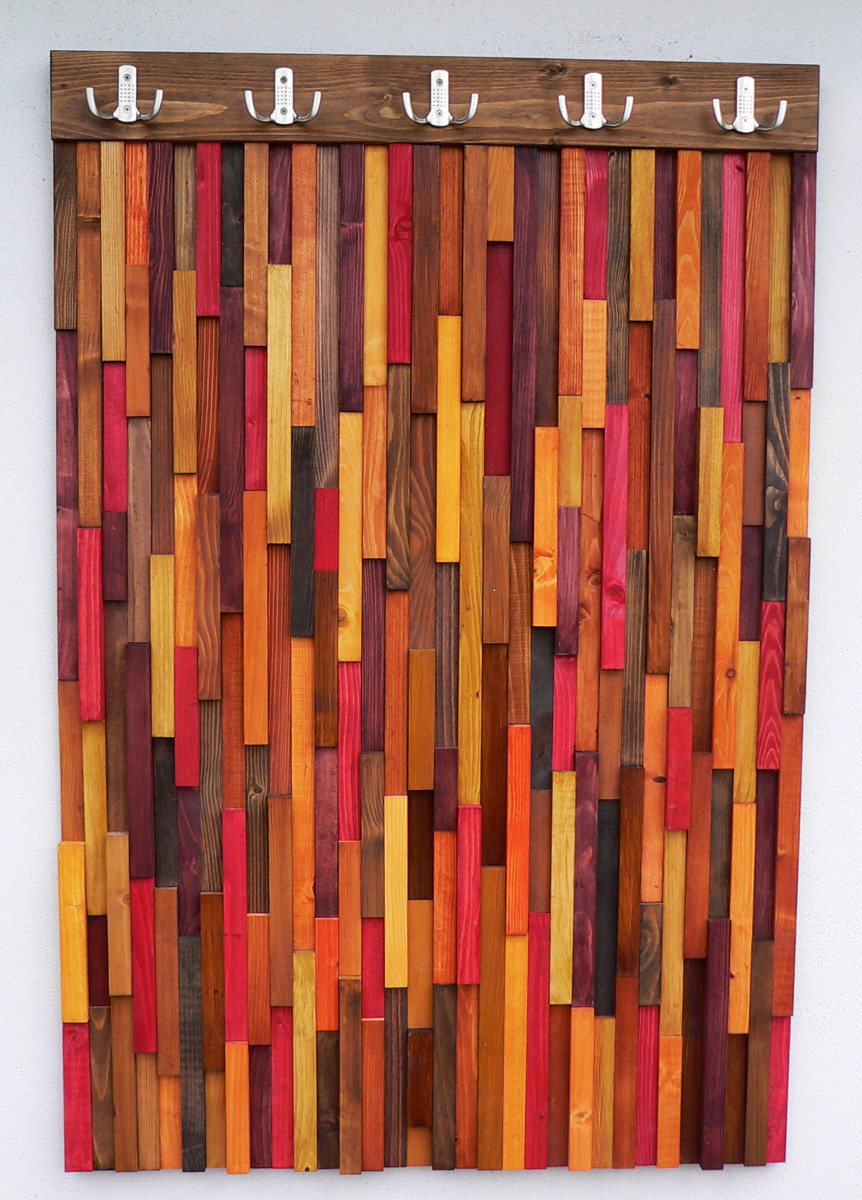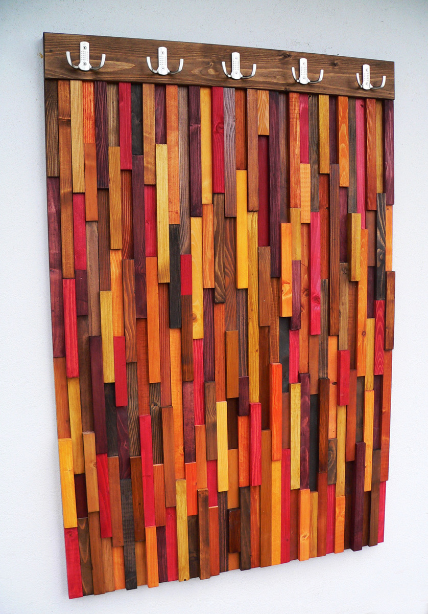 Moderní designová věšáková stěna je zhotovená ze smrkového masivu a kování Hettich. Jedná se o zakázkovou výrobu, každý kus je originál.