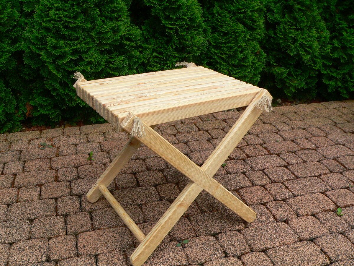 Stolek vyrobený z masivu sibiřského modřínu, který je v porovnání s dubem, jasanem nebo borovicí dvojnásobně rezistentní.Konstrukce stolku je unikátní v tom, že místo kovového spojovacího materiálů je použité pouze jutové lano