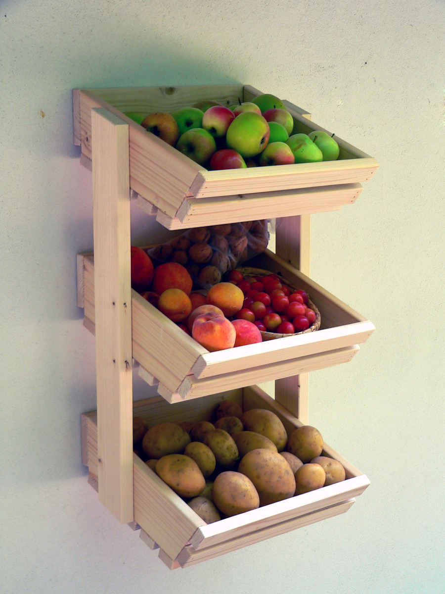 Praktická dřevěná police určená pro uskladnění ovoce, zeleniny a pod. Vhodná do kuchyně, špajzu, atd. Vyrobeno ze smrkového masivu tl.18 a 24 mm. Dodávané ve smontovaném stavu. Snadná a jednoduchá montáž na zeď.